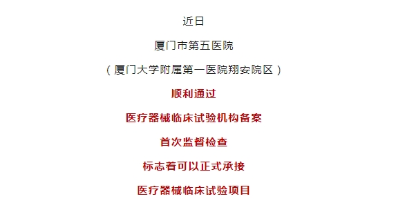 喜讯!厦门市第五医院通过医疗器械临床试验机构备案