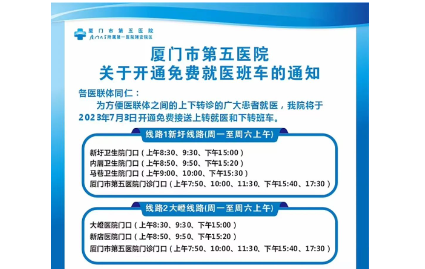 好消息!市第五医院开通免费就医班车