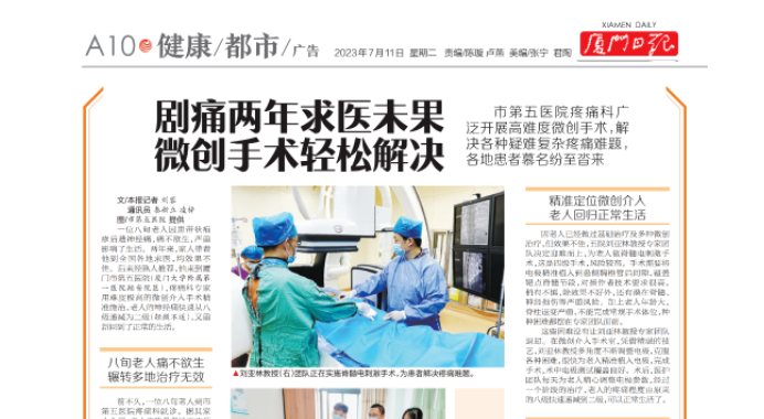 《厦门日报》:剧痛两年求医未果 五院微创轻松解决